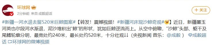 新疆一河水退去现“巨鲸”奇观,长约520米,犹如巨鲸逆流而上
